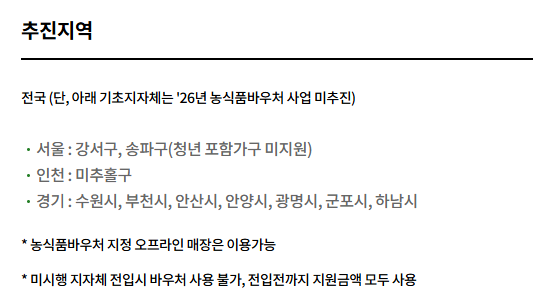 지역·연도별 농식품바우처 사업 공고 기준을 따릅니다.
