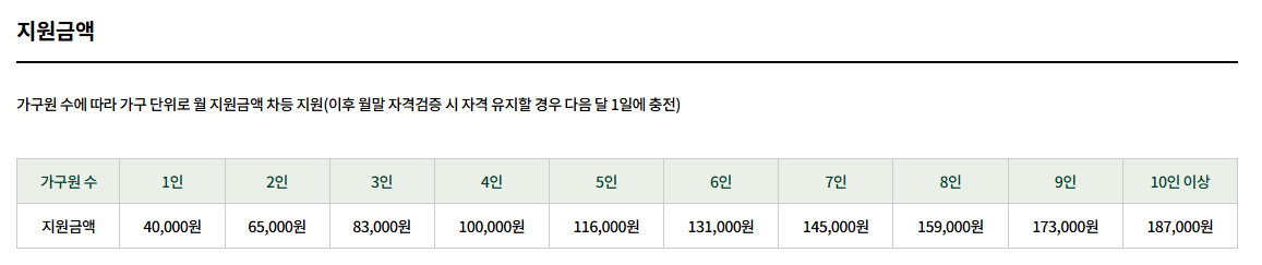 지원 금액은 가구원 수 기준으로 다릅니다.