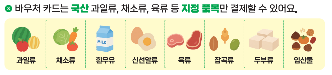 👉 농식품 바우처 카드 사용품목은 ‘기본 식재료 중심’입니다.