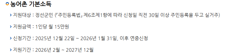 👉 정선군 농어촌 기본소득 신청은