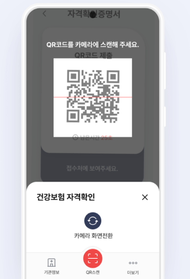 - 보험증 화면 또는 QR 코드 제시