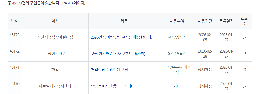 👉 여기서 사천시청 구인, 관내 기업 채용공고를 확인할 수 있습니다.